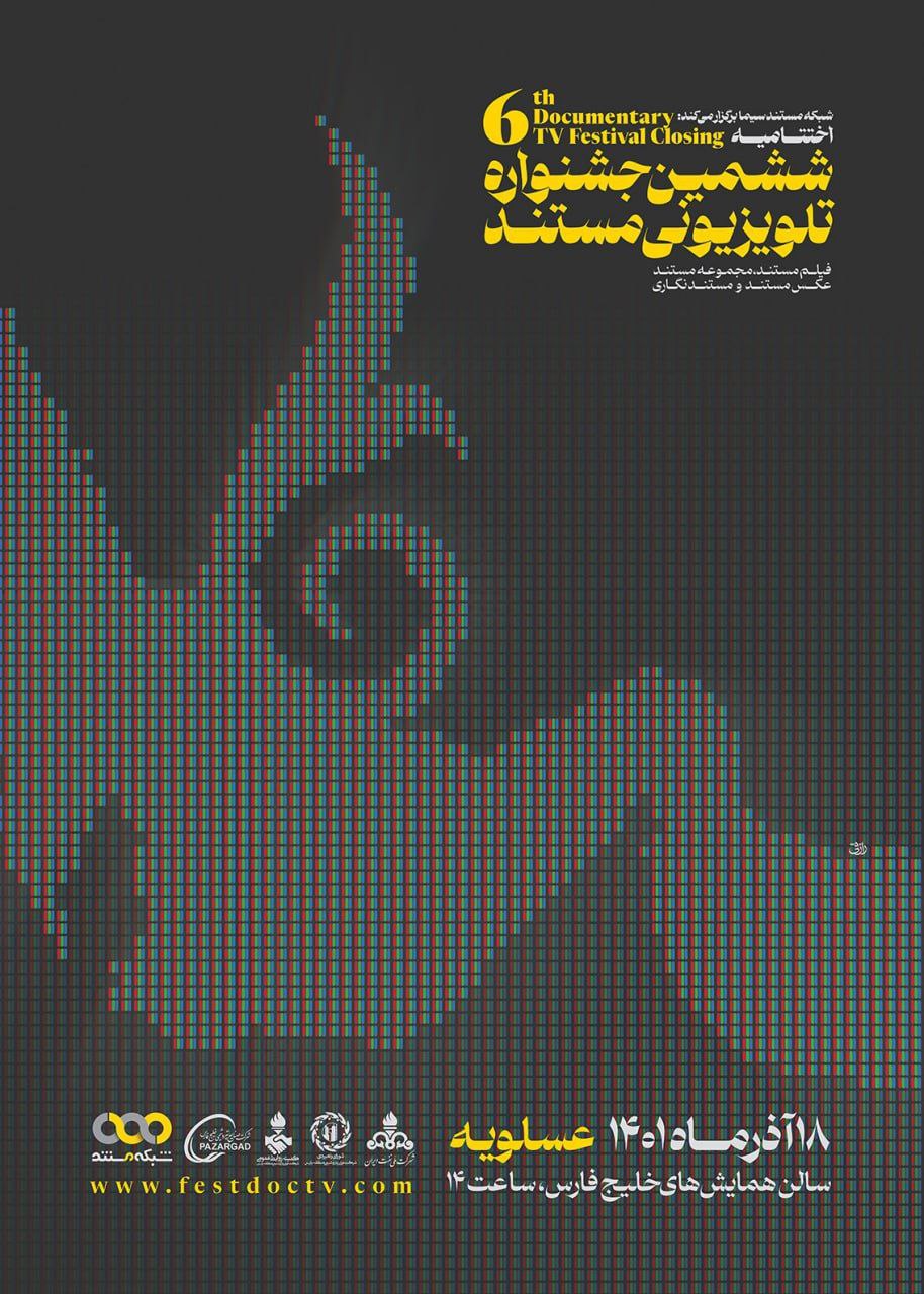 به گزارش روابط عمومی شبکه مستند، مراسم اختتامیه ششمین جشنواره تلویزیونی مستند روز جمعه 18 آذرماه با حضور پیمان جبلی، رئیس رسانه ملی، محسن برمهانی معاون سیما و محسن یزدی مدیر شبکه مستند و دبیر ششمین جشنواره تلویزیونی مستند در بندر عسلویه برگزار میشود.